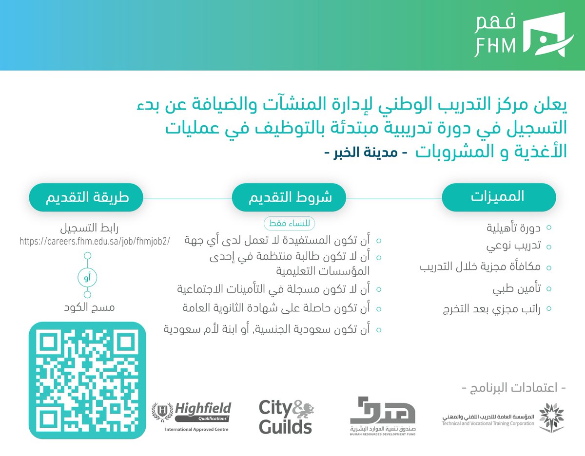 مركز التدريب الوطني لإدارة المنشآت والضيافة فهم عن بدء التسجيل للنساء في دورة تدريبية مبتدئة بالتوظيف وظائف السعودية ساحة الوظائف