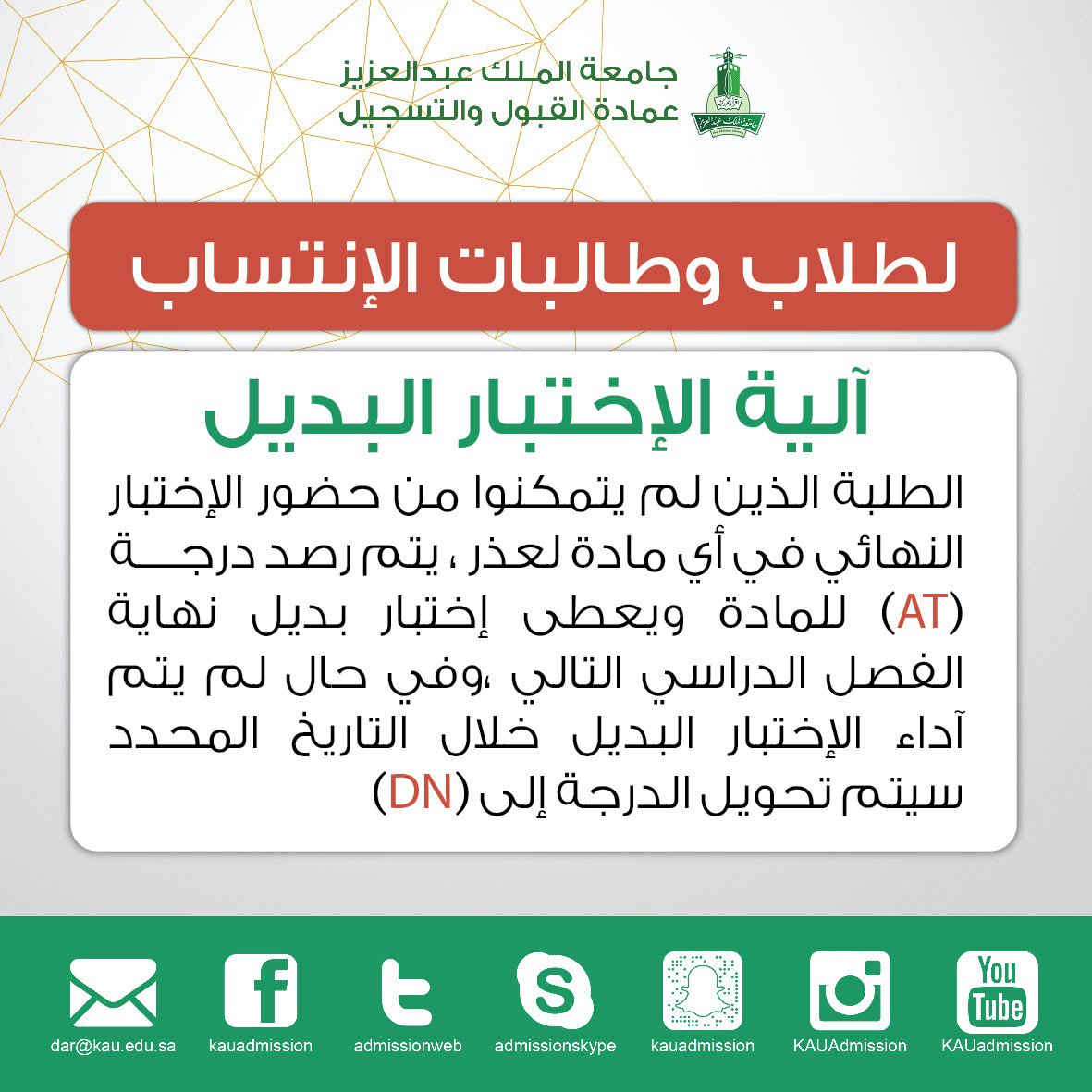عمادة القبول والتسجيل Kau On Twitter إعلان هام آلية الإختبار البديل لطلاب وطالبات جامعة الملك عبدالعزيز انتساب