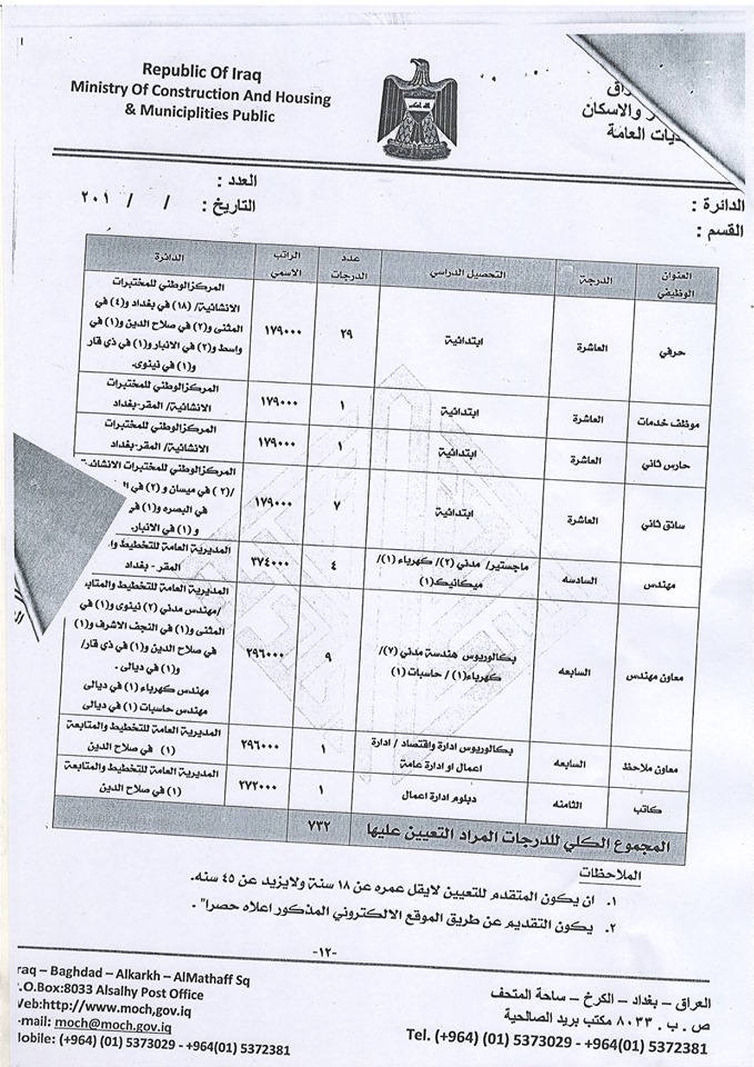 استمارة التقديم لتعيينات وزارة الاعمار والاسكان والبلديات العامة 2019 منتديات درر العراق